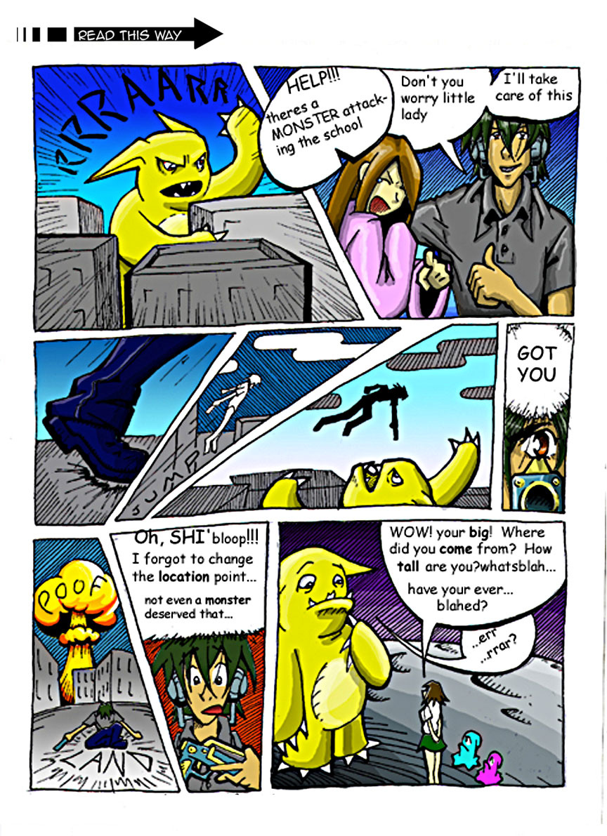 Typical day at school. Giant pikachu looking monster attacks. Could happen to anyone, right? cheers! ps. I drew this comic 10years ago XD