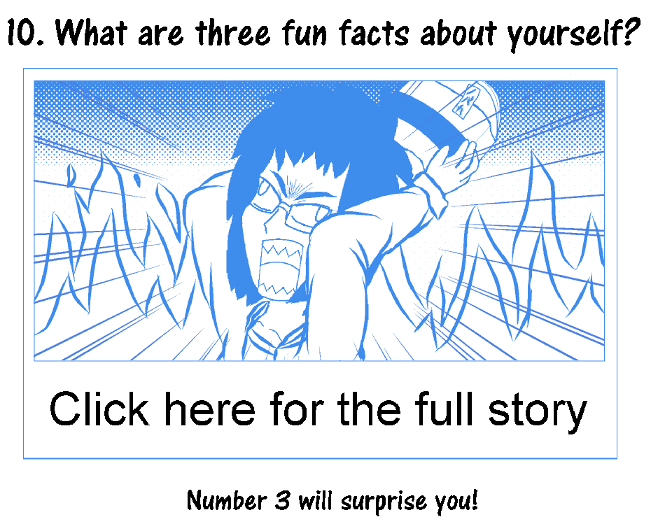 Got tagged by: https://tapas.io/Drangelu Go check her comic out! If you wanna do this tag yourself you're free to do so! 1. What's your favorite part about Tapastic? 2. What's your least favorite Part about Tapastic? 3. What type of art do you do? 4. Who do you look up to in the art world? 5. How did you stumble upon Tapastic? 6. Who/What inspired you to begin art? 7. If you could do anything for a day, what would it be? 8. If you won the lottery tomorrow, how would you spend the money? 9. Are you an animal lover? If so,what kind? 10. What are three fun facts about yourself? 11. Do you put cereal in first or milk? 12. What are your favorite shows/comics? 13. What kind of music you like?
