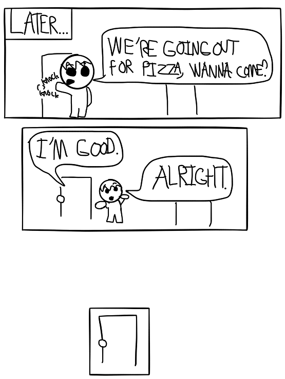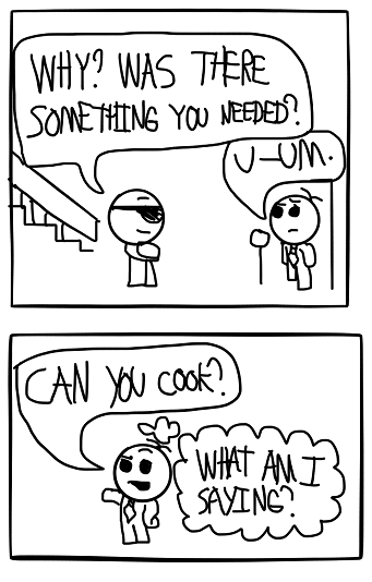 Jeff meets the other roommate. I upgraded to drawing it on my IPad, now I just need to upgrade my writing.