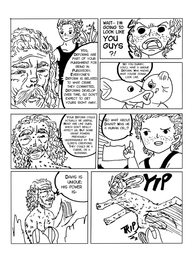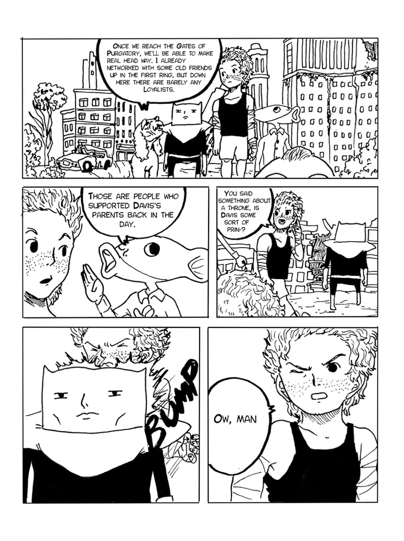 An action/adventure comedy thriller by Tony and Kyo Comics (Good Little Girl, After Reality), DAVIS is the story of a boy named Virgil who is sentenced to the land of Purgatory for breaking God's Speed Limit. When the mysterious creature DAVIS offers him aid in what is considered an impossible escape back to Earth, Virgil is thrown into the mix of an insane power struggle. Can Virgil and his friends come out on top and make it out of Purgatory alive?