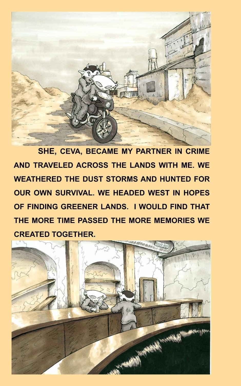 An Alien and Cow couple fight to survive a harsh and dangerous world. In this action packed adventure you will get introduced to the characters you will grow to love as you witness the many skirmishes they will experience as their story unfolds. A blend of comic, scenic views, and art takes a different approach of story telling in a push and pull on action shots versus still moments of beauty. Indulge in this truly utterly stellar tale!