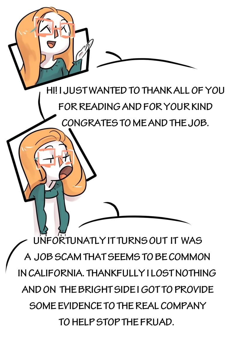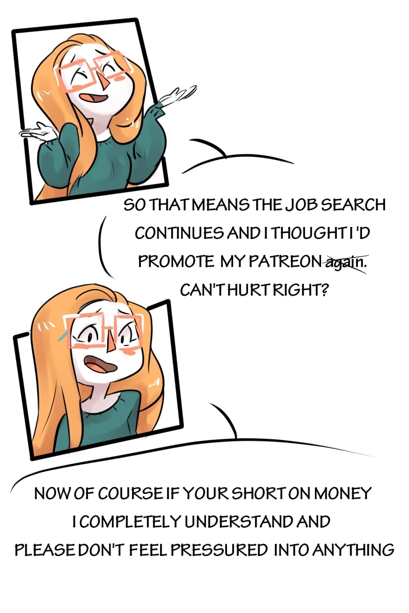 I'm sorry to hear that you were, but it's great that you didn't lose anything and that you were able to help the company catch the fraud you mentioned. I may not use Patreon, but I still really support you and the comics you've been making for Tapas, so I hope to at least tip you every now and then to show my support. God Bless you, and I hope that your job search goes well!