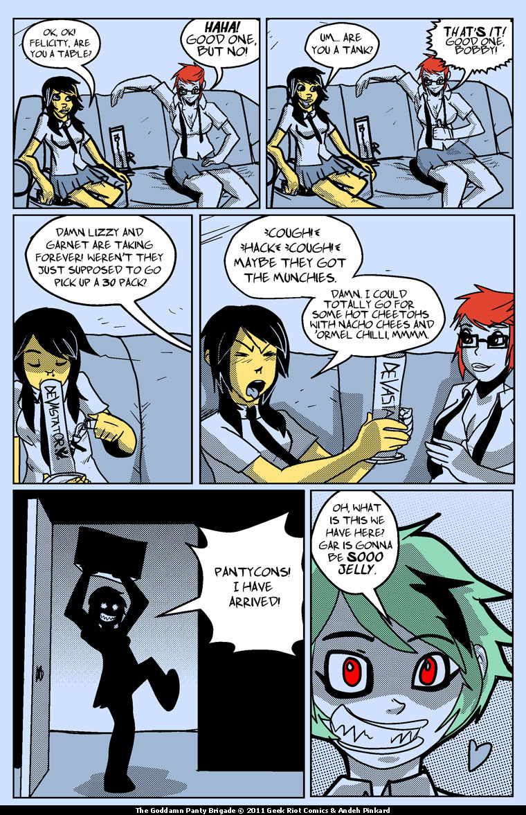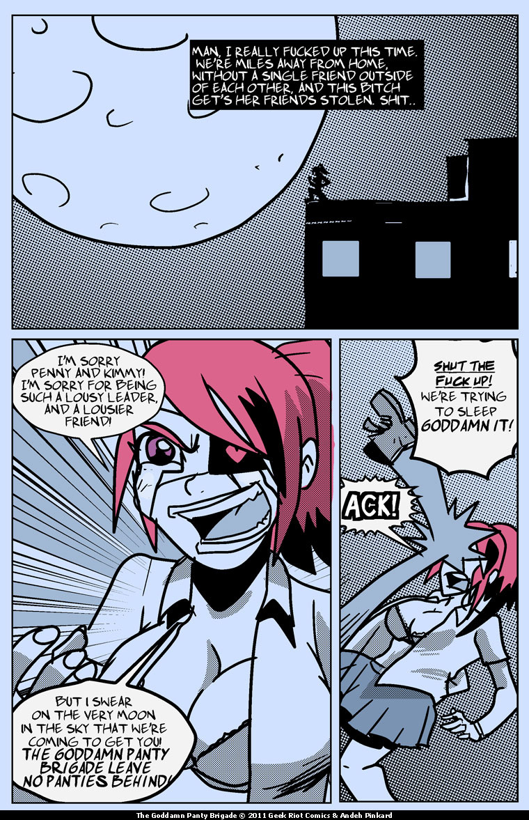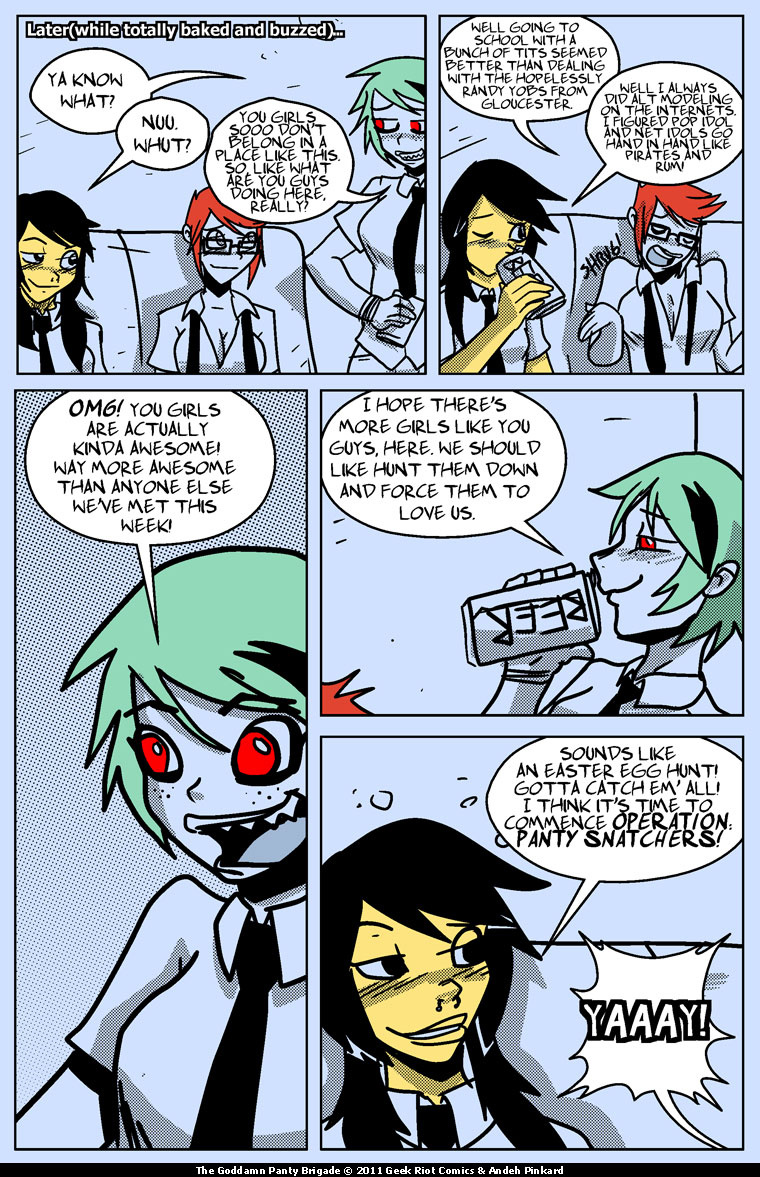 The goddamn panty Brigade are a wild, drunk, violent and self-centered group of Geek Alt Girls. Lead by Garnet Gutterslut, these rambunctious girls act first and deal with the consequences later! read with caution! you just might fall in love!