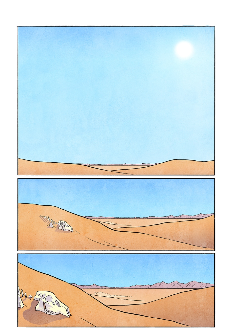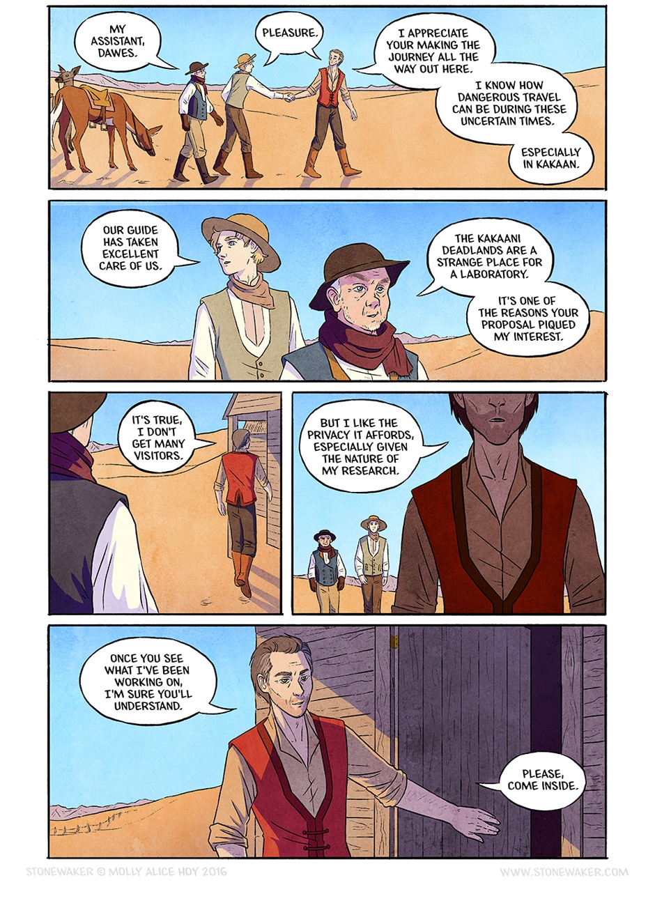 Just plain desert directly around the building? Doesn’t look very convincing... (Sorry, I like your drawing style and am looking forward to seeing more of the story.)