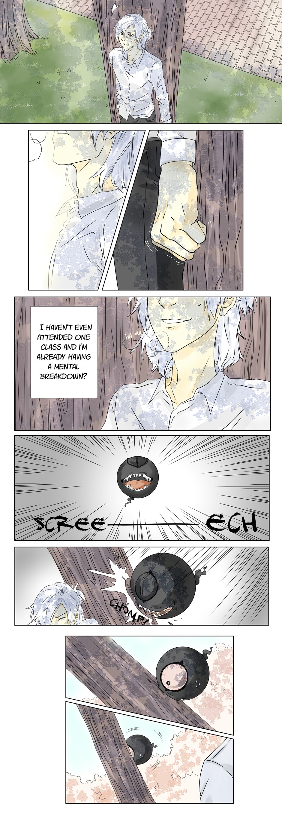 Your art style is really cool! I have never seen anyone else do shadows so well. The shadows of the tree and leaves really make me feel like I'm sitting under the tree in a school. And the clock tower and gate reminds me of UC Berkeley. The colors and how people are dressed makes it feel like the it's spring time! I'm looking forward to more! :)