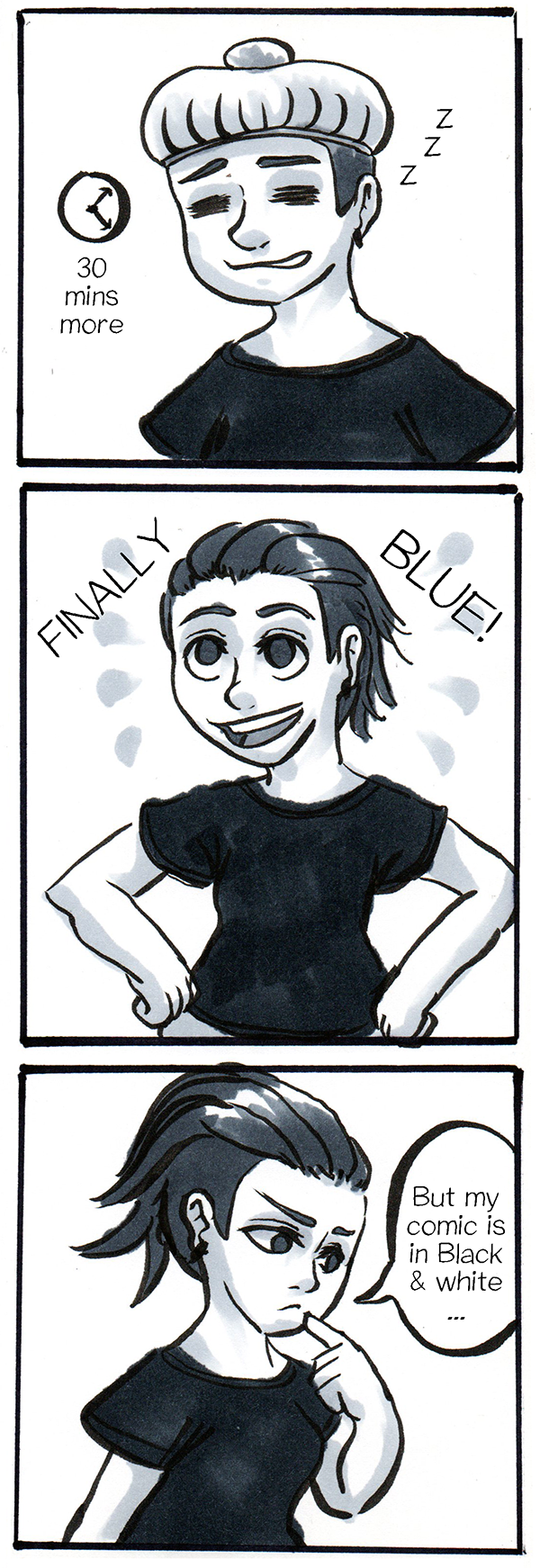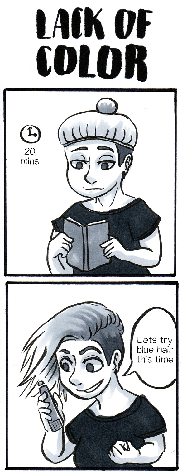 GUUUYS! I finally got blue hair and it's amazing! <3 But I completely forgot that you can't see it! Disadvantages of using only black and white :'c
