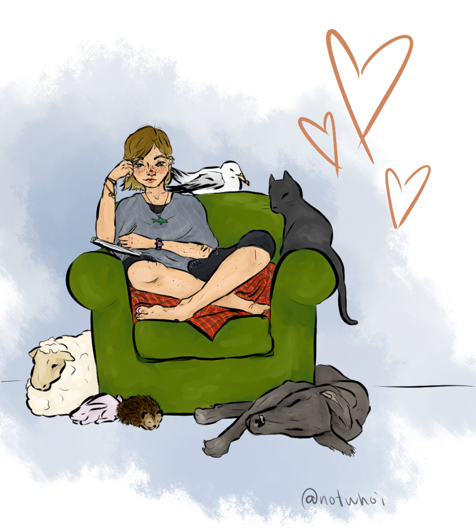 hey sorry for my umm, not updating >-< I'm currently on an exchange at the moment and haven't had time. also sorry again for my ever changing style.. haha.. still haven't found mine... anyway, here's a drawing of me with all my little creatures <3 it kinda reminds me of those 'meet the artists' pieces :D if you have any questions feel free to ask