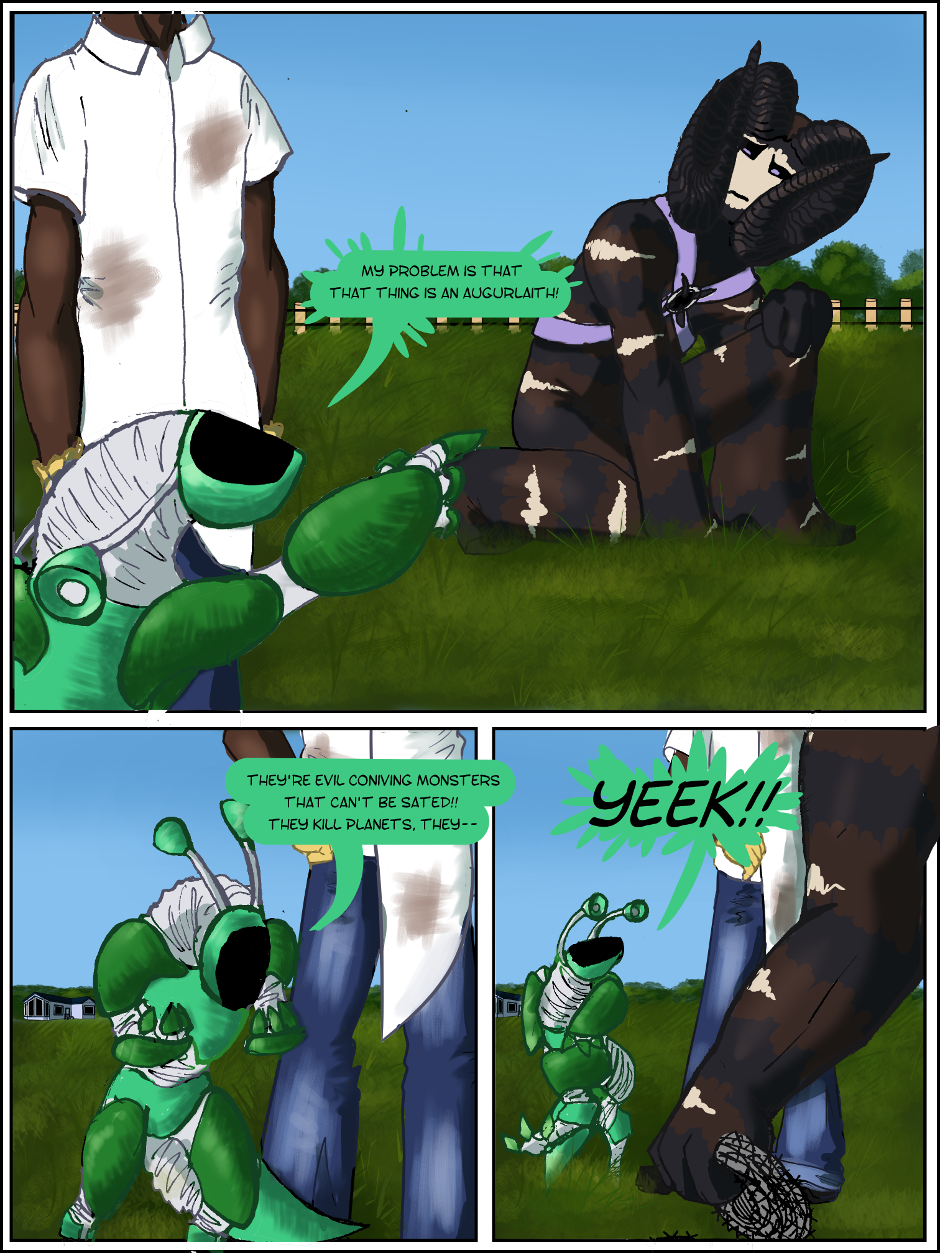 ok okok okokokokokok. Ok. I'm learning tp paint things again so the grass is not an awful menagerie of lime and slightly off lime greens. I'll work on metals next but first things first I'm off to college! so it might be a couple of weeks until the next page :>