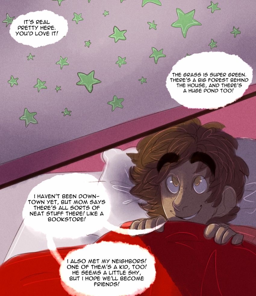 Red Star is a coming-of-age webcomic with supernatural elements, set in 1980's Texas. The story spans over twelve years and follows the stories of two neighbor schoolboys haunted by their pasts, and how their stories intermingle as they learn to overcome them together.