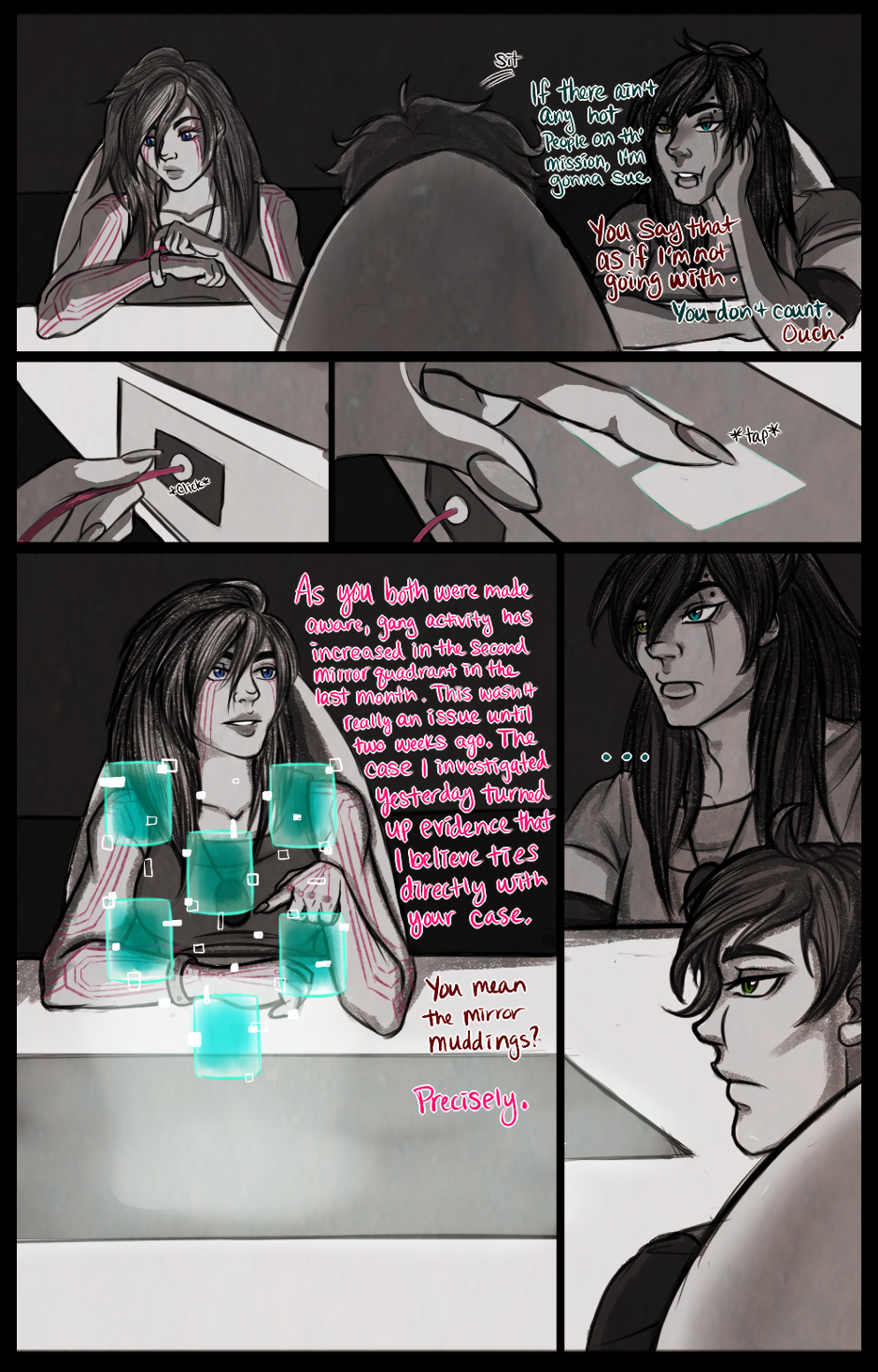 Just a quick note, as I mentioned in my most recent post on my profile, all updates from here on out will be mostly in greyscale unless a new character is introduced or if there's a serious part in the series. This is in hopes that I can get more updates cranked out and available for you guys and to decrease workload on my end!