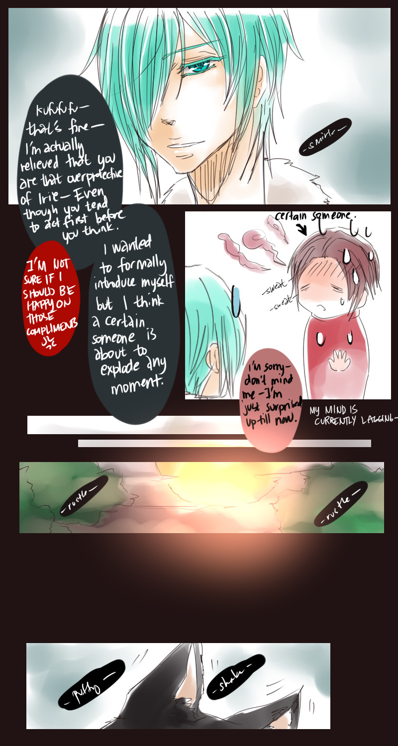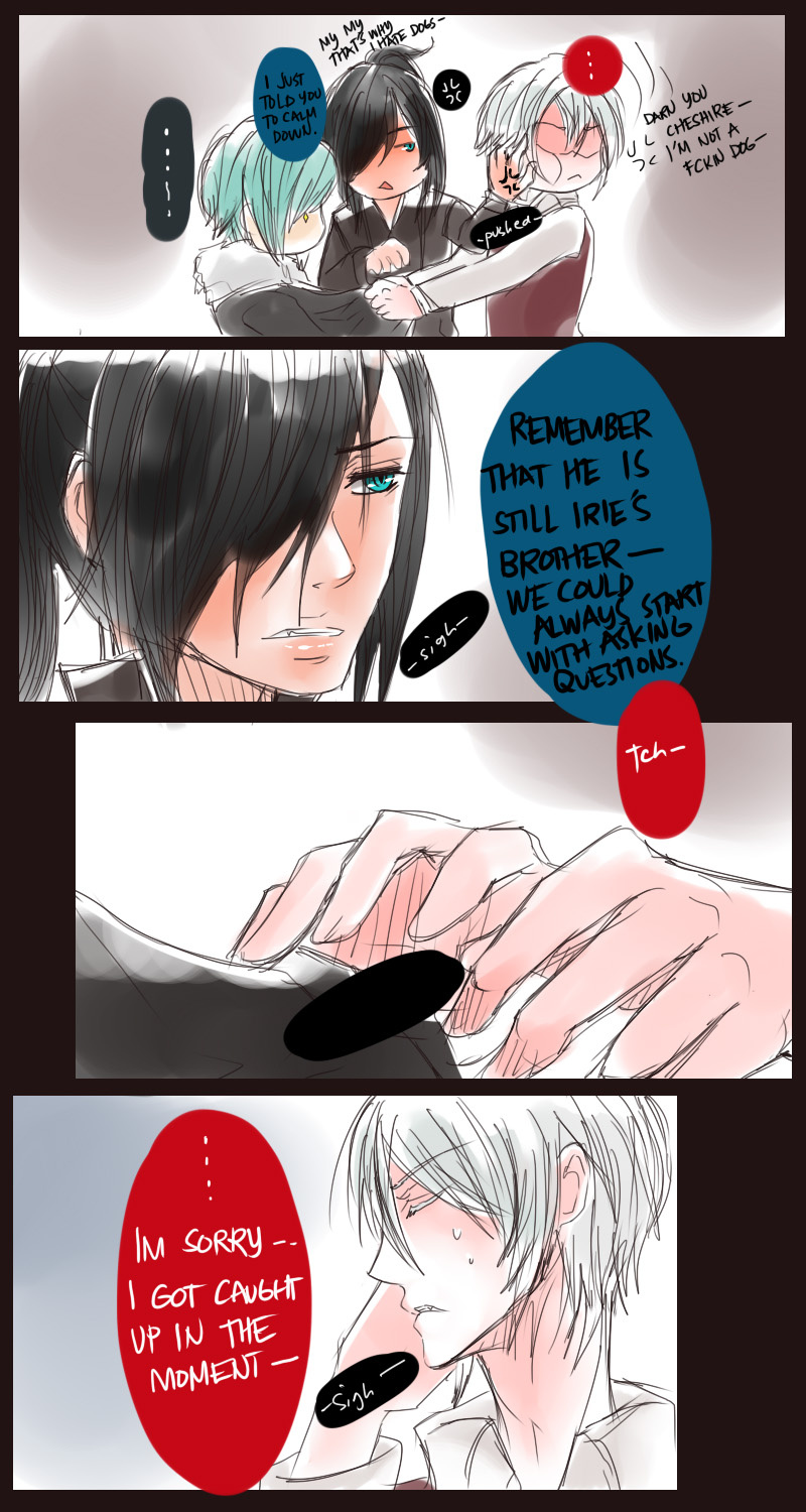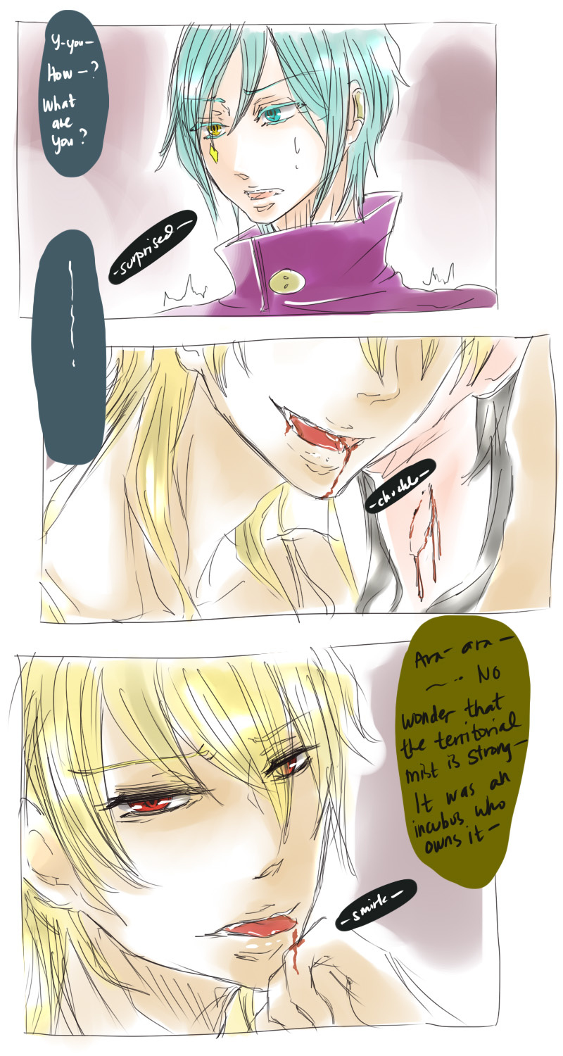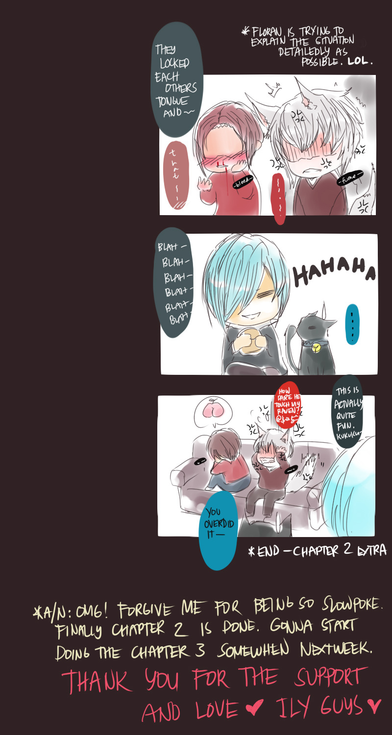 A bl/yaoi sketch webcomic that revolves around Irie Lloyd, a supposed-to-be normal 19-year old college student, turned out to be a reincarnation of "Raven". Raven is one of the oldest noble pureblood vampire known as the Black Bird. His bestfriend, Ian, who turns out to be an Astral Fox. The cat he's petting for years, Lily, who turns out to be his old familiar back then (a cat demon spectre). And the wolf who he sealed for long time, Lyall, who turns out to be his past lover. What will happen to Irie's normal human life? Would it remain the same? What are the secrets to be told about his own whole-being?