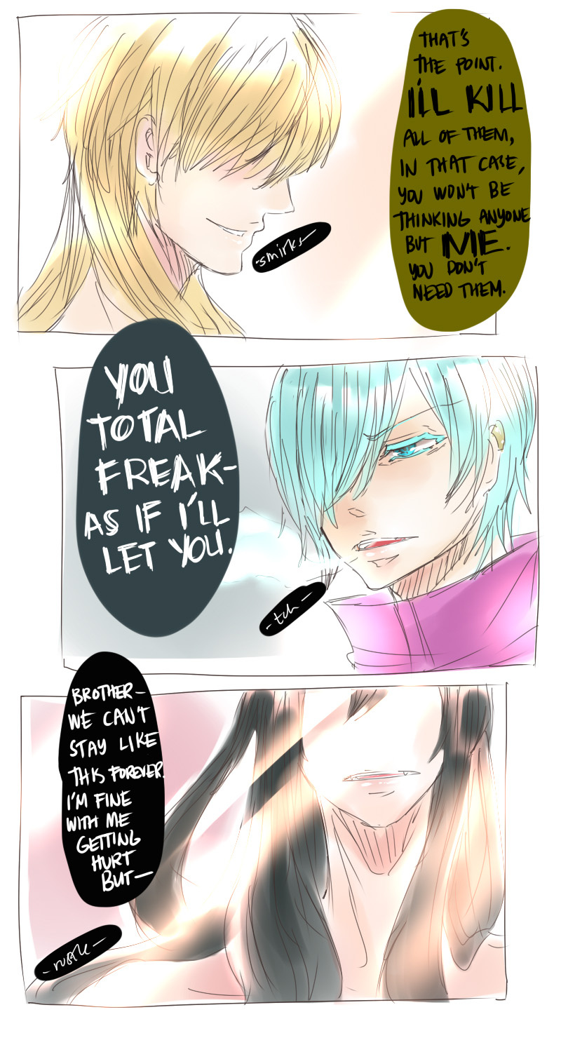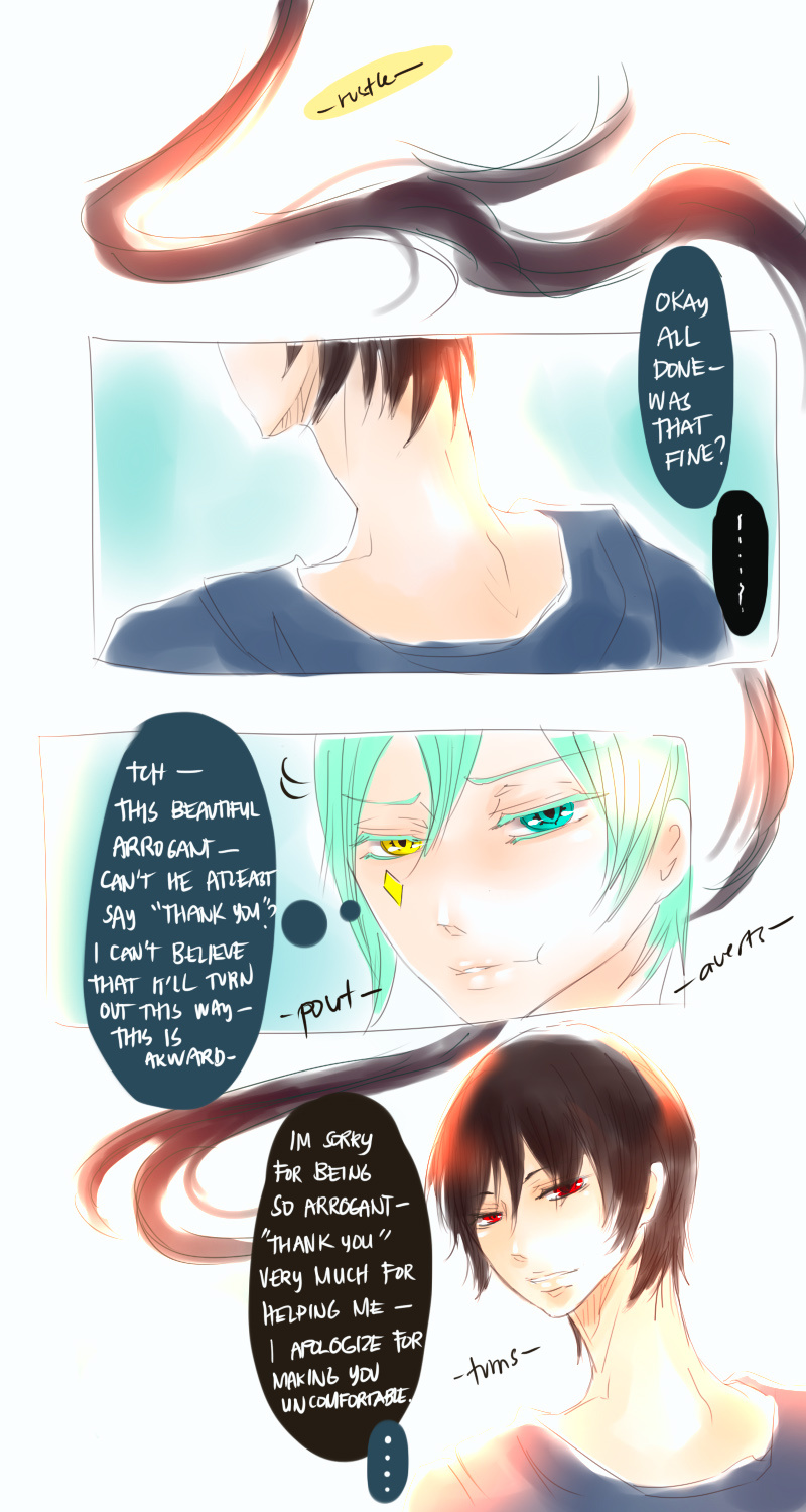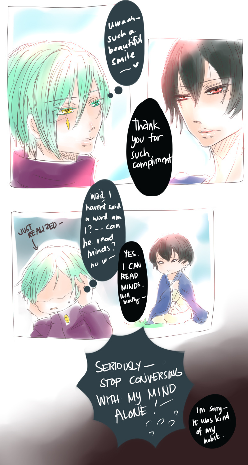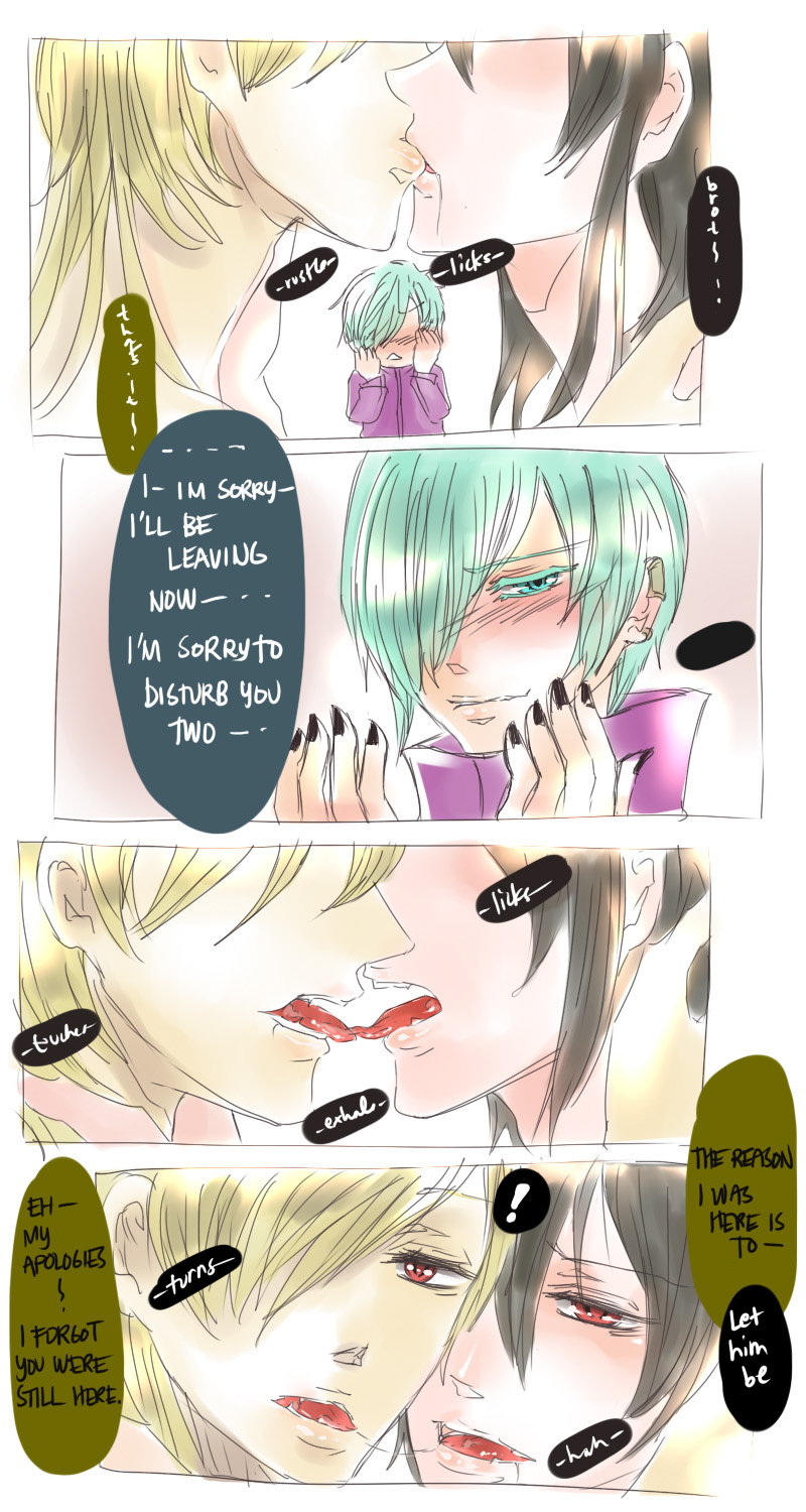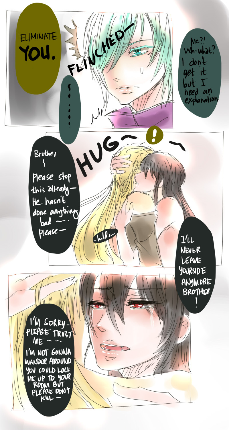 A bl/yaoi sketch webcomic that revolves around Irie Lloyd, a supposed-to-be normal 19-year old college student, turned out to be a reincarnation of "Raven". Raven is one of the oldest noble pureblood vampire known as the Black Bird. His bestfriend, Ian, who turns out to be an Astral Fox. The cat he's petting for years, Lily, who turns out to be his old familiar back then (a cat demon spectre). And the wolf who he sealed for long time, Lyall, who turns out to be his past lover. What will happen to Irie's normal human life? Would it remain the same? What are the secrets to be told about his own whole-being?