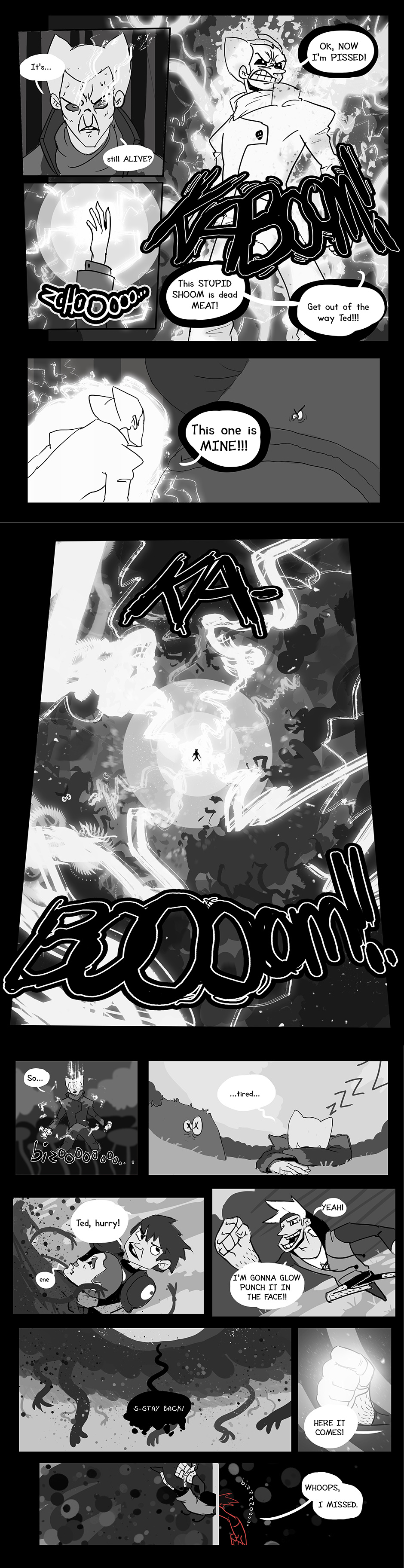 Ted, the glowing punching punchout puncher, is a fist-firing, cannon collider with a special ability to glow. That's really it. He has potential to become a hero, but his past holds back his full potential. Join Ted and his adventure through Regicide, a comic tournament hosted by deviantart.