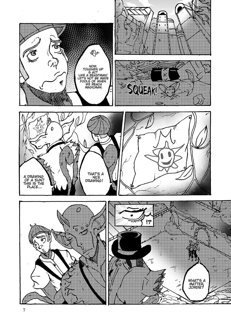 Yep, I'm following the story...but I just love those characters strange head shapes...like in panel 2 how Jordie's head tilts. Then him walking away in the next panel is so cool. Your style draws me in to stop and take my time to look at the artwork, though I've already absorbed the story. YES! I used to LOVE Dr. Zeuss's "Cat in the Hat" book series in my youth. Your art reminds me of that style, too! Wow!
