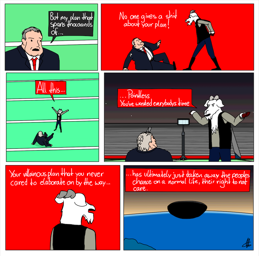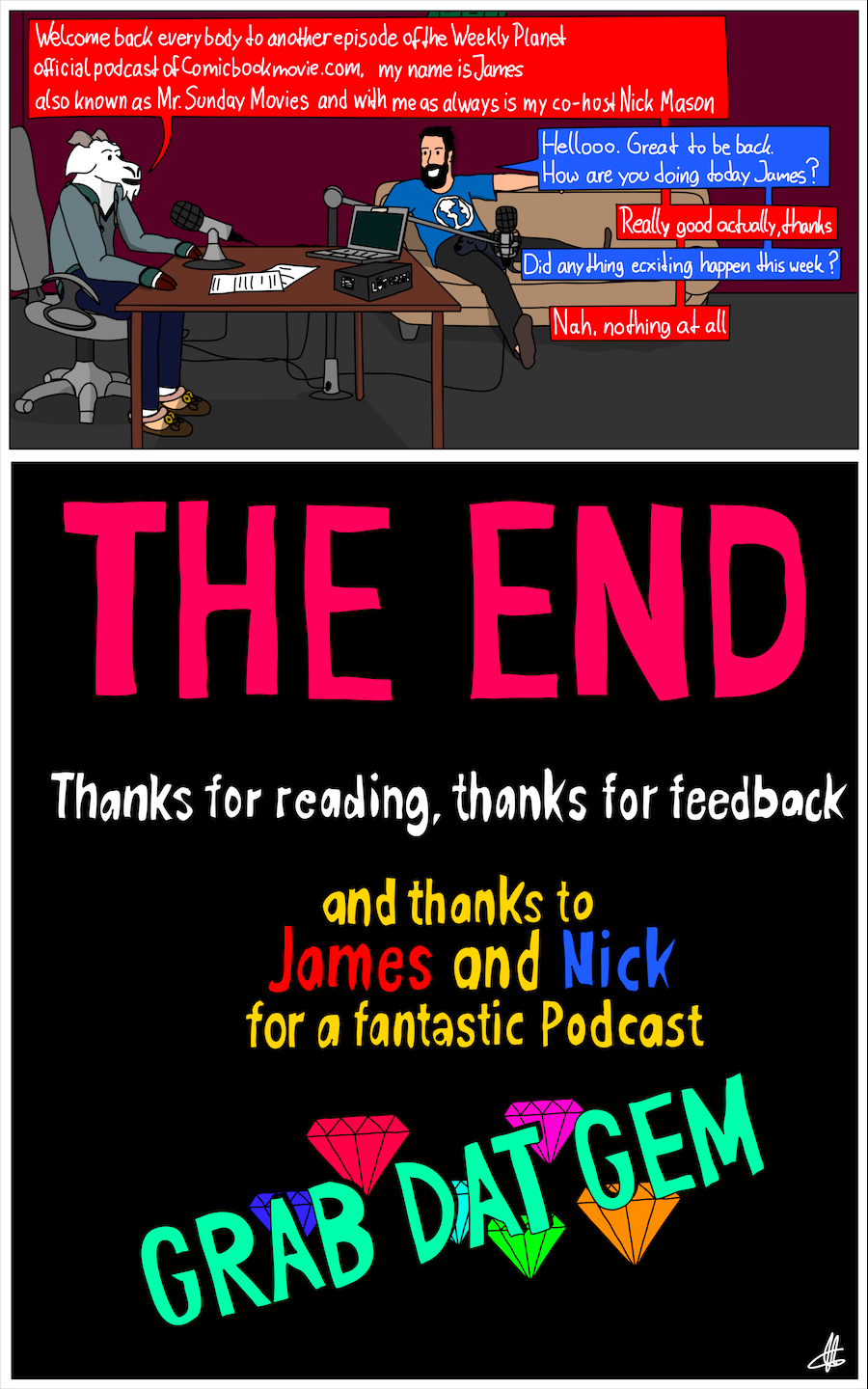 Based on the Podcast of the same name, The Weekly Planet revolves around James and Nick finding themselves in situations that only could be born from an over the top Comic world, which they actually are in. So that's fitting.