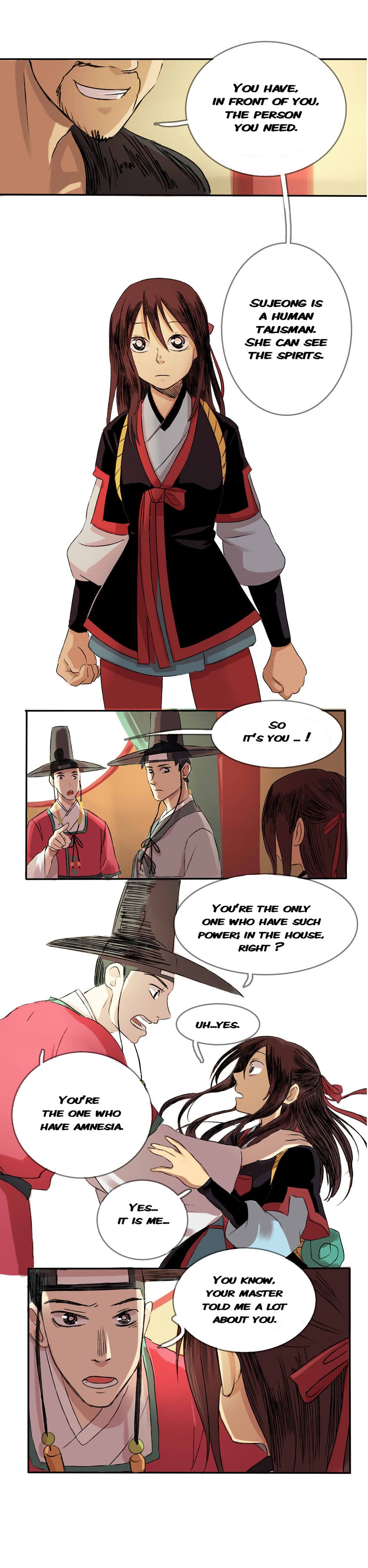 Sujeong, an amnesiac human talisman, wants to find her memories. She goes hunting demons with her team mates.