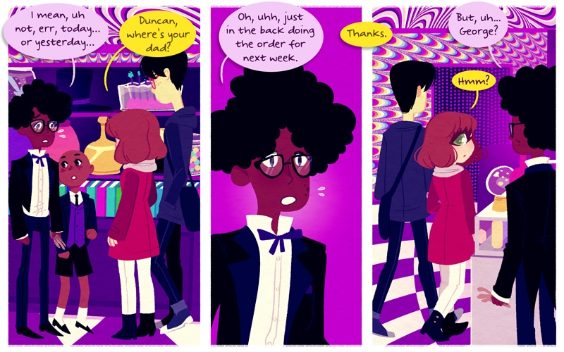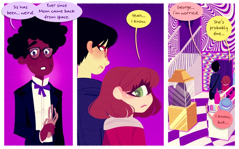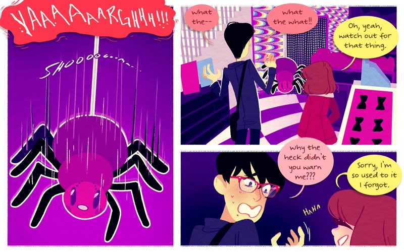 Monster Pop! is a comic about two best friends and the slice of life adventures they share! Monster Pop! is set in an alternate Earth where monsters coexist with humans; sometimes they integrate well, sometimes they clash. This comic is heavily influenced by shoujo manga. Monster Pop! includes musical and interactive elements: Every now and then there will be a page with animation and/or music and most of the main characters have their own blogs (which you can find linked on the cast page). Monster Pop! is drawn by Maya Kern.
