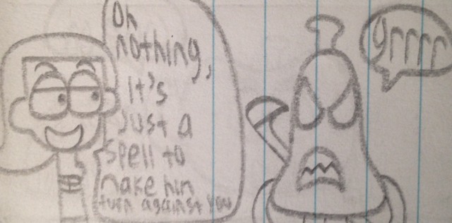 During a night out on patrol, Katherine puts Pear under a spell that possesses him to turn on Apple. Now Apple must find a way to break him out of his trance.