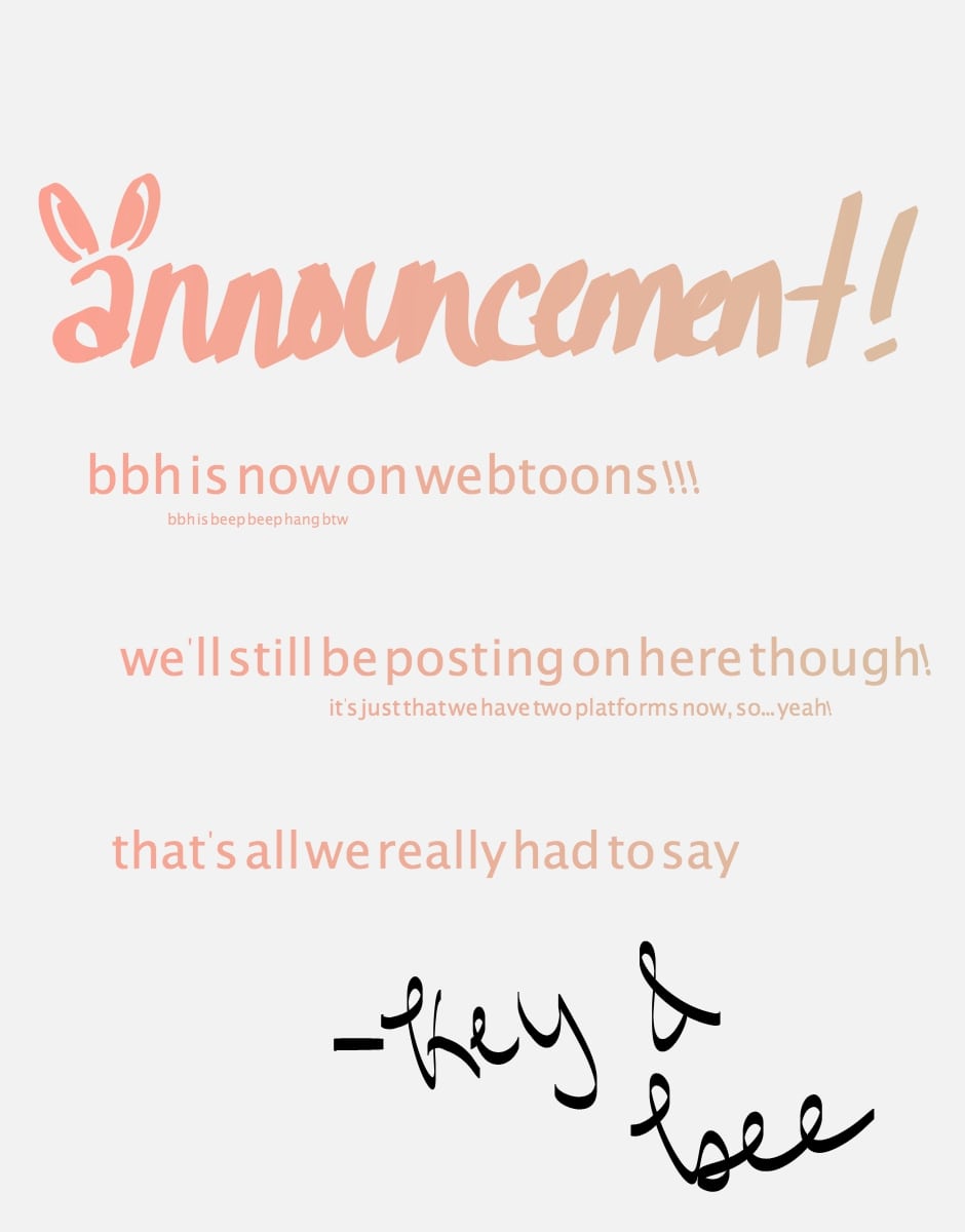 not like anybody cared its just like, if you see beepbeephang on webtoons then its us and not ppl stealing our stuff