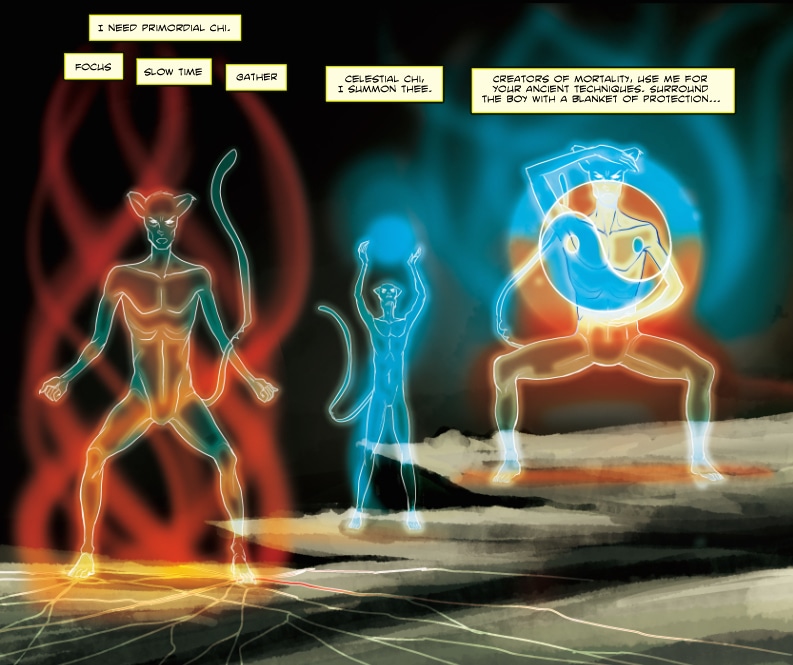 Cat aliens called pranans are force of good in their galaxy. They travel in chi-powered, cybernetic plant-based space ships.