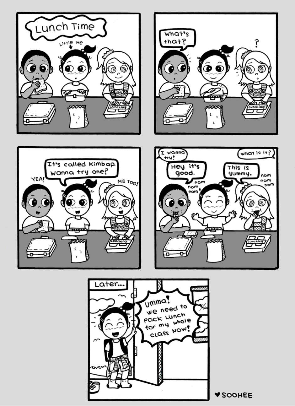 As a Korean-American girl, lunch time was always an interesting experience for me. Thankfully, most kids in my school were very kind and accepting of me. It also helped that my school was very diverse.