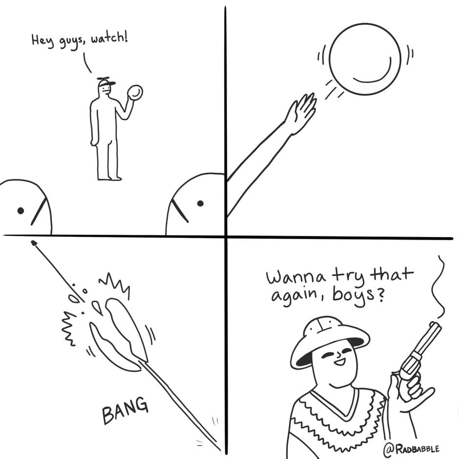 The gunslinger does enjoy popping toys.