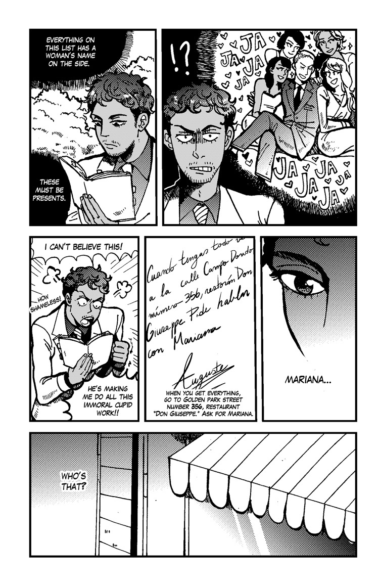 I just wanted to say that this is a fantastic and beautifully drawn manga! It's very refreshing to see something set in south america!! You're very talented and I'm really pumped to keep reading!! :)