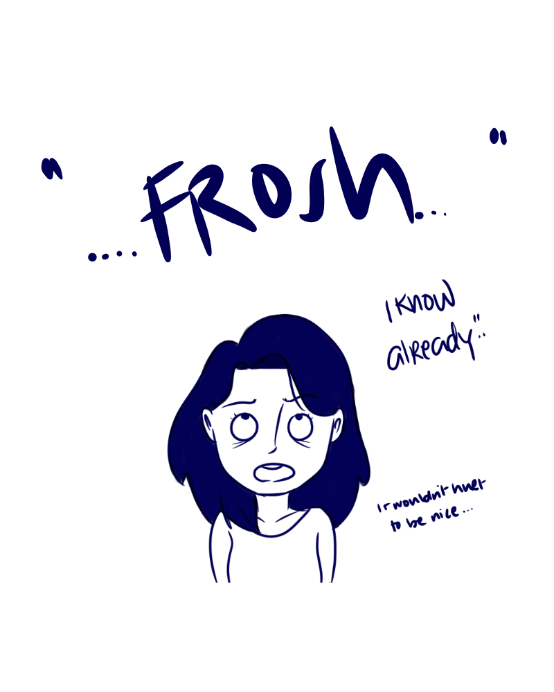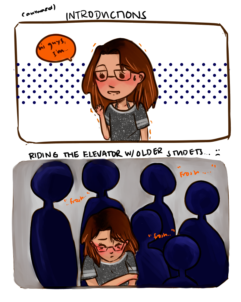 what really stuck to me was how some of the older students really intimidated me, and i got the feeling that they somehow didn't like us frosh (or just me idk :<) i just kept hearing them say the words "..frosh.." in their conversations. :((( i didn't feel comfortable AT ALL.