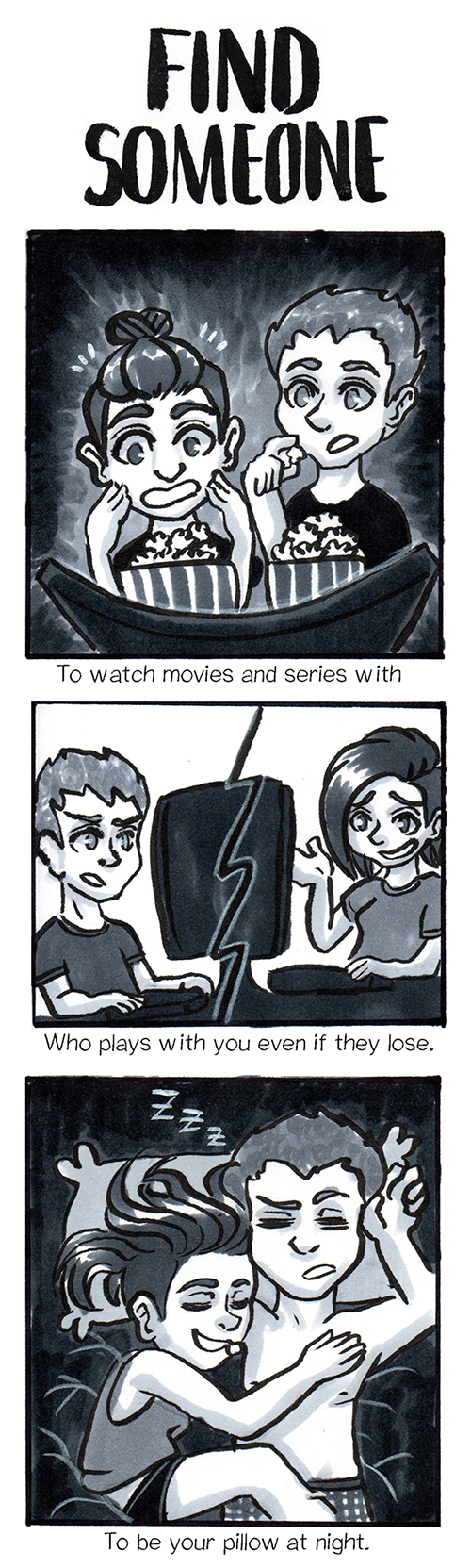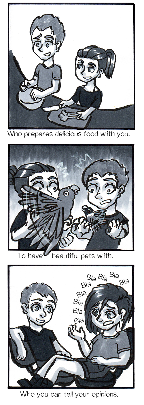 Hello! This is the comic from last week, I had no time to finish it ): but it was to celebrate my 4 years relationship, that someone could even be a sister/brother or a friend :D Just someone to be happy with! <3