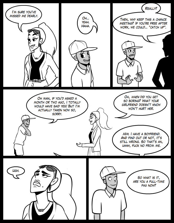 Warning: the f slur is used by a character in this chapter. It also has some non-sexual nudity and only a lot of sexual references. Please be aware before reading!