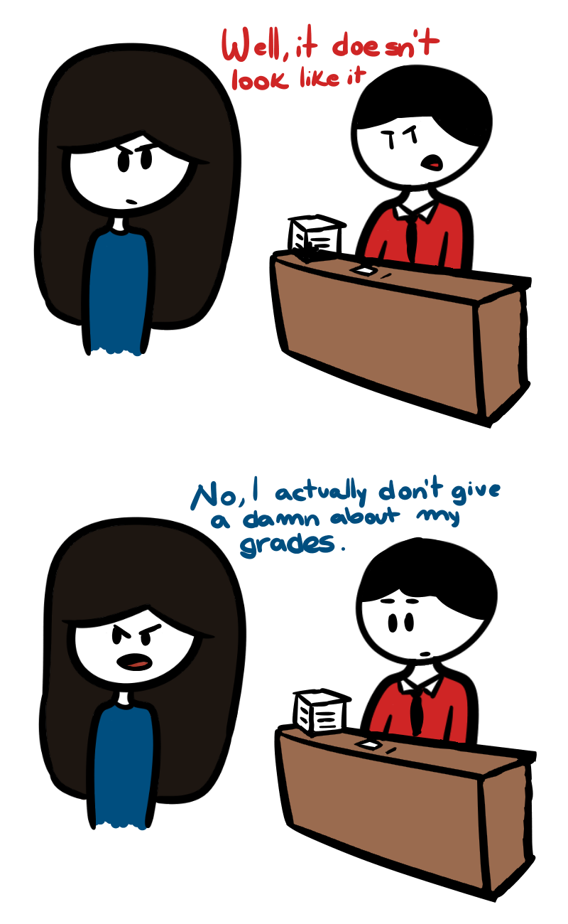 If I had said that to him, I'd have failed the subject. Still, I didn't care at all.
