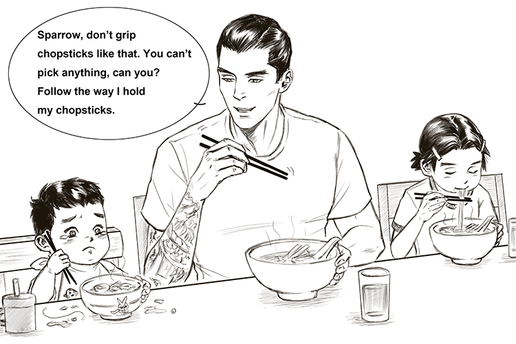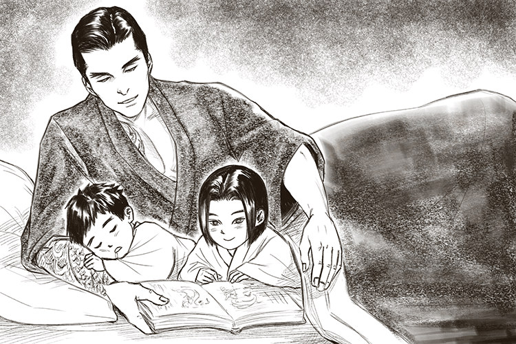 Dad dragon taking care of his baby dragons.