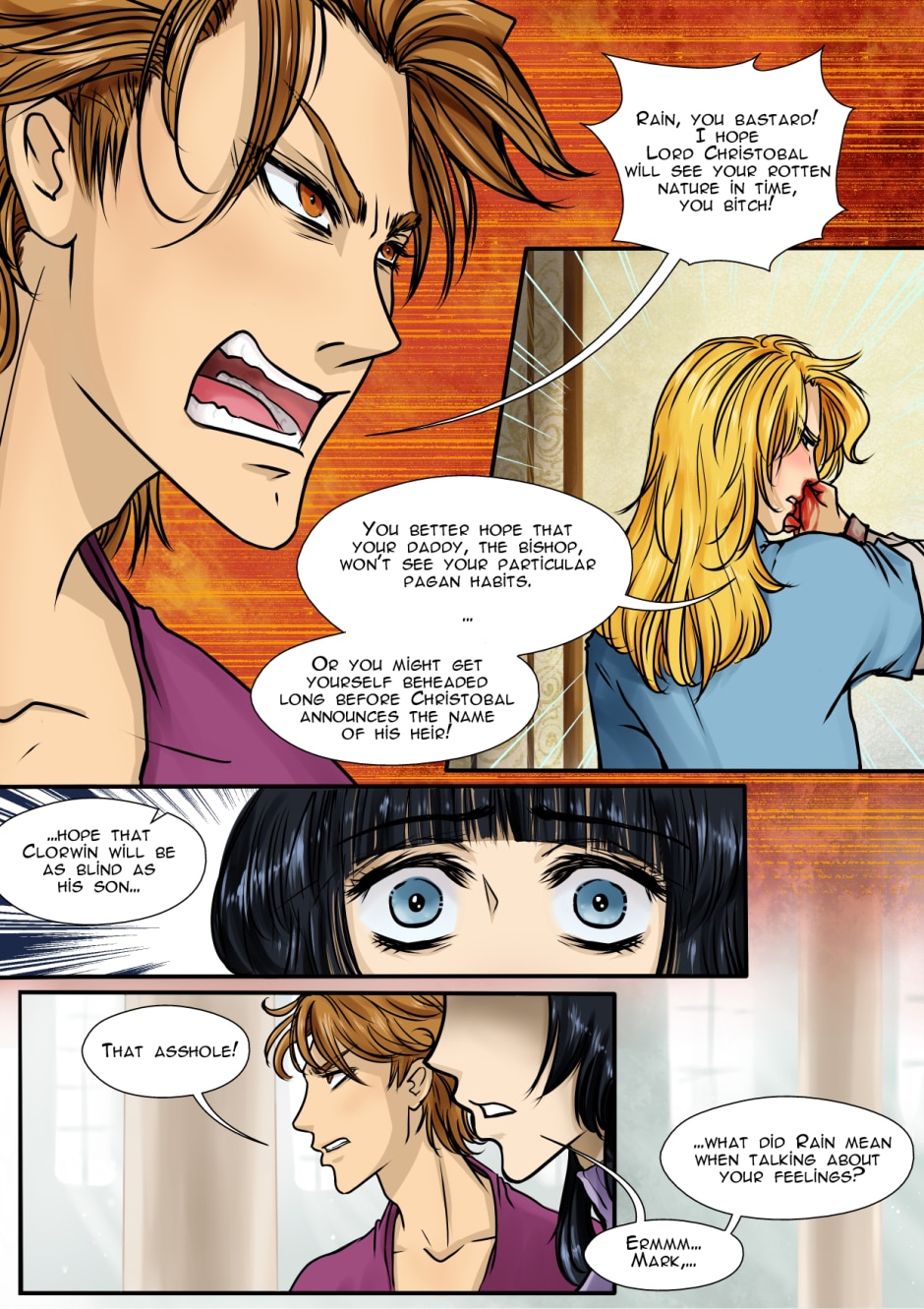 Well at least Rain didn't made a dirty move talking about Mark sexual preference with the highers that mean he is a good kid deep inside... I hope... beautiful comic indeed, your art and colour are amazing