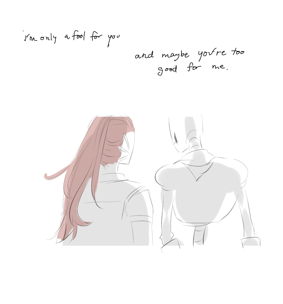 Alphys has issues after the whole lab incident, and when Undyne tells her that she actually likes her, she literally can't believe her. Then Undyne started getting up earlier or in the middle of the night to run off somewhere, and Alphys doesn't want to be the overbearing girlfriend that tracks her partner. But she suspects, and she becomes more depressed.