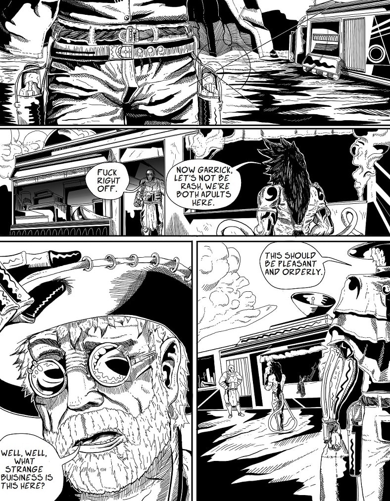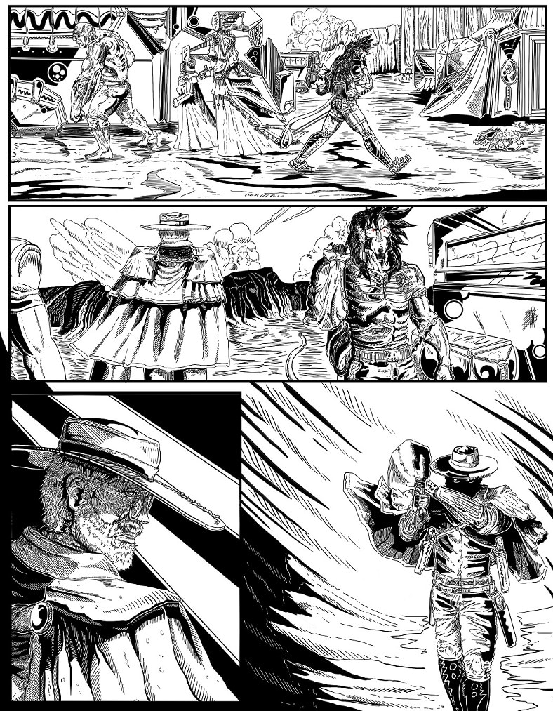 #Action #adventure #legacy #Arthis #Kamu #david #garrick #Cowboy #Guns #hoverboard #swords #sword #black_and_white #ink #manga #western
