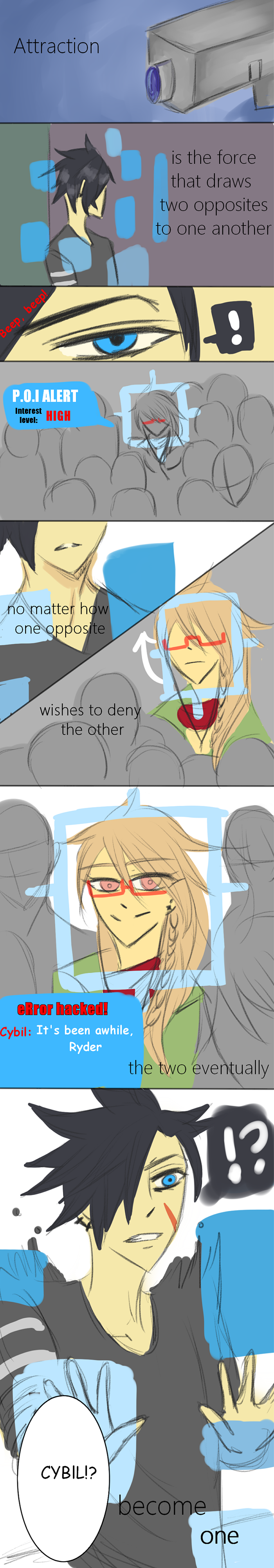"Where did you go?" Ryder asked looking her in the eye. Cybil smirked with shrug "That's a good question, you wouldn't believe the places I've been for the past 2 years."