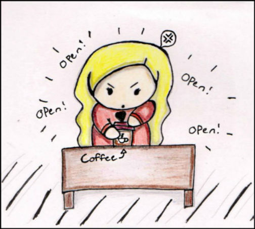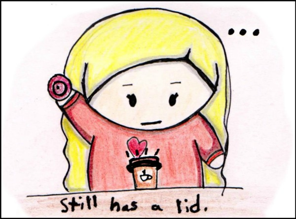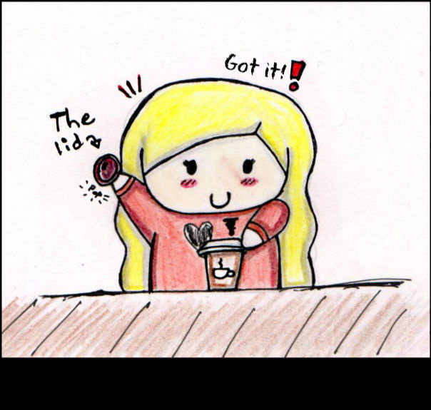 At some coffee shops you have to put your own lids on your cup..... My sister somehow managed to put 2 lids on her cup, but she didn't know until she took off the first one to cool it down >.< She's special :3
