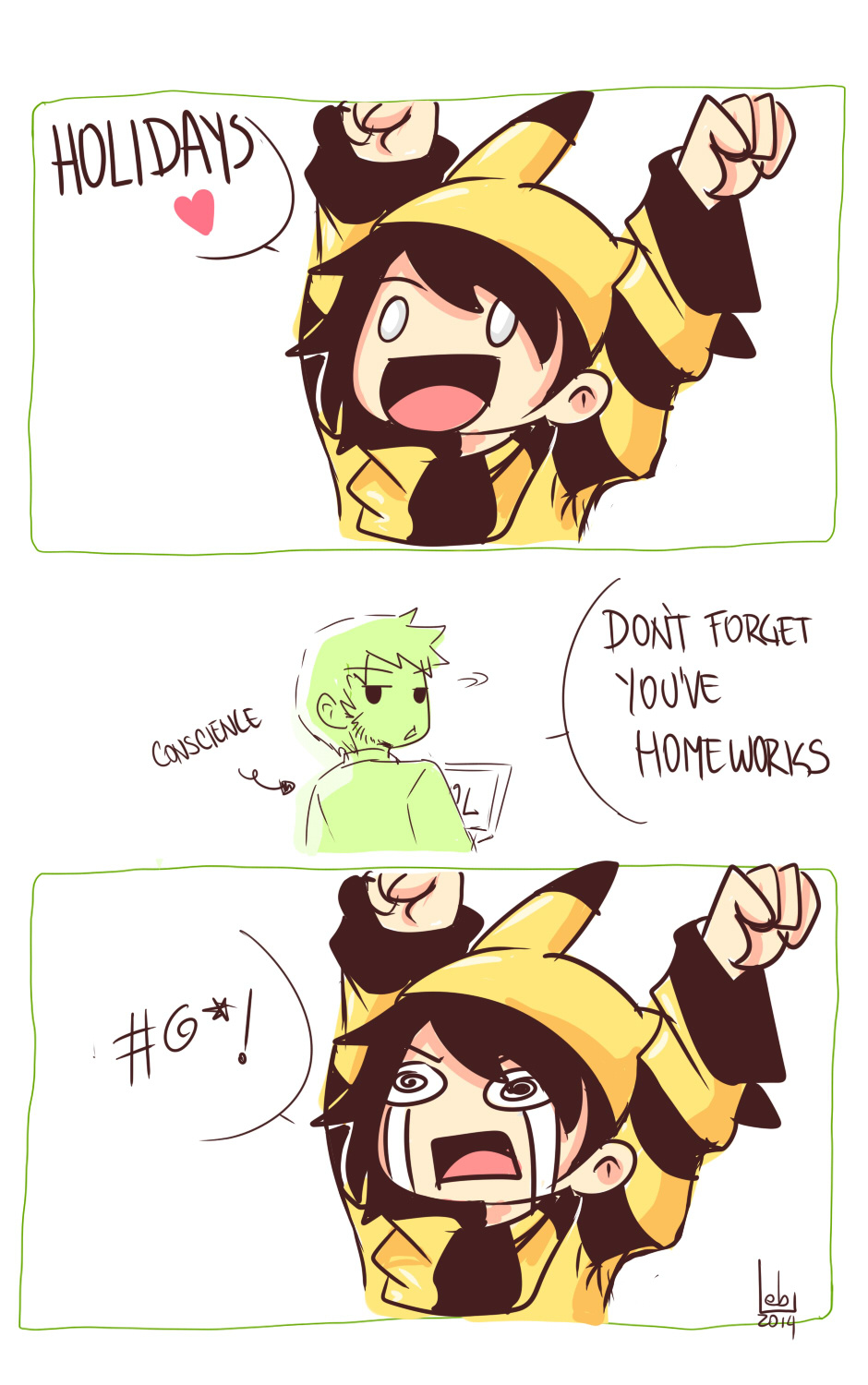 Or vacations! And teachers give homework! I only wanna sleeeeeeep! T_T
