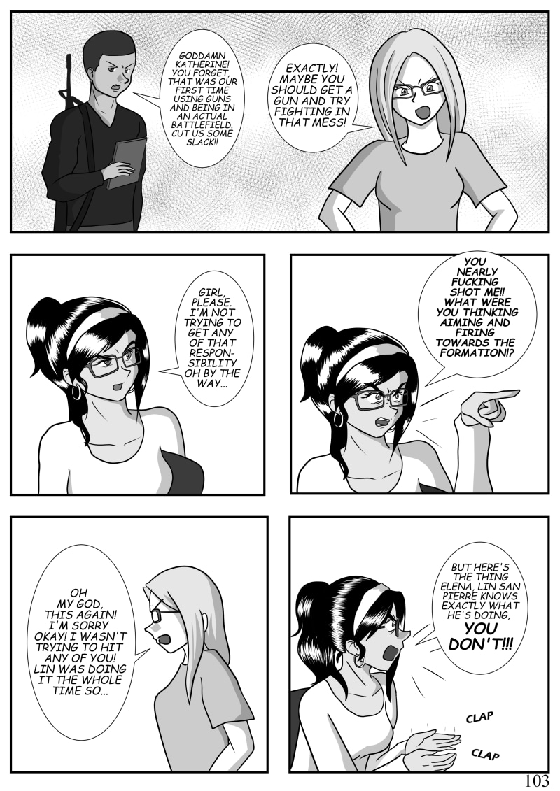 (LEFT to RIGHT) A seemingly normal trip to a convention tosses a group of friends in the middle of a brutal conflict where they are reunited with a friend from the past, Lin. This elite soldier with a mysterious past and an even more mysterious ability is now tasked to save his friends from a war torn city. This is a work of fiction. Names, characters, businesses, places, events and incidents are either the products of the author’s imagination or used in a fictitious manner.