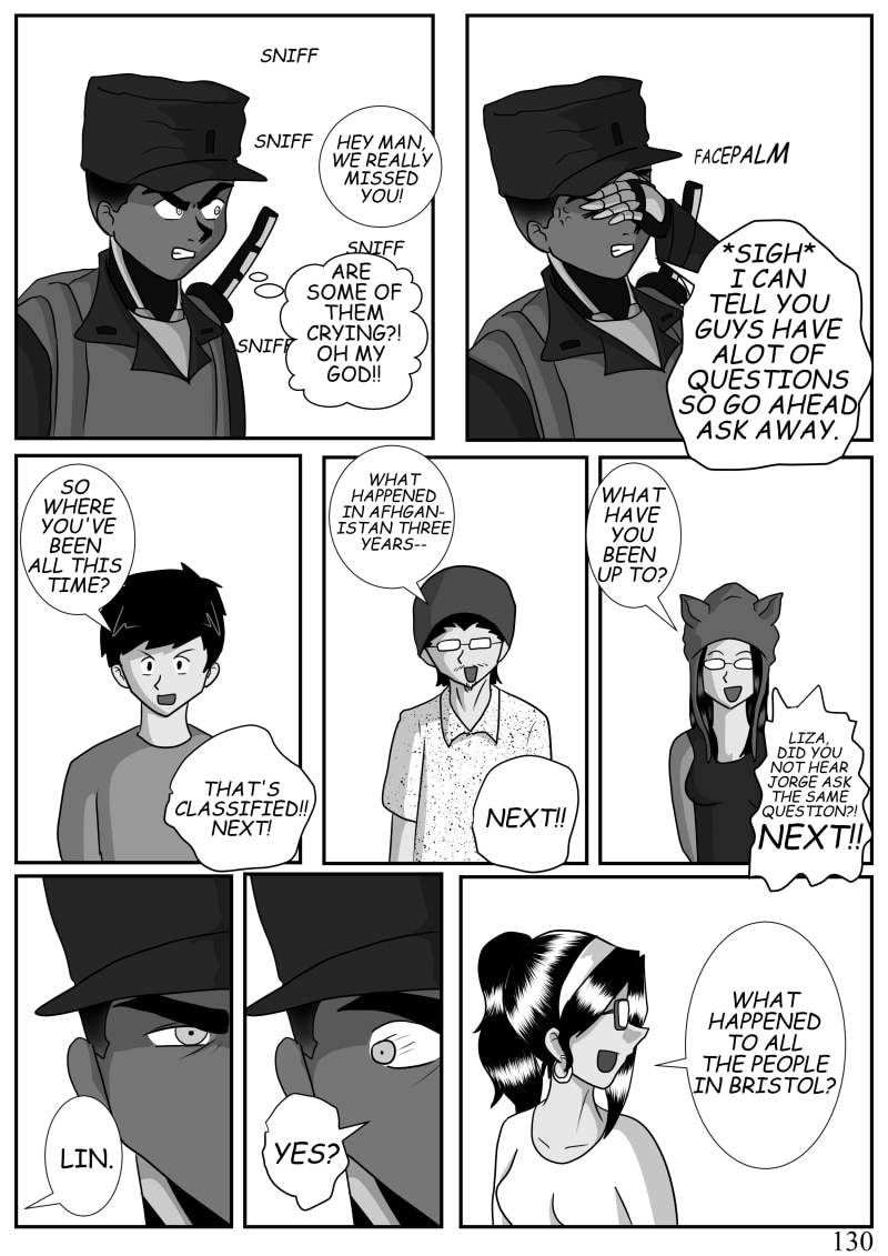 (LEFT to RIGHT) A seemingly normal trip to a convention tosses a group of friends in the middle of a brutal conflict where they are reunited with a friend from the past, Lin. This elite soldier with a mysterious past and an even more mysterious ability is now tasked to save his friends from a war torn city. This is a work of fiction. Names, characters, businesses, places, events and incidents are either the products of the author’s imagination or used in a fictitious manner.