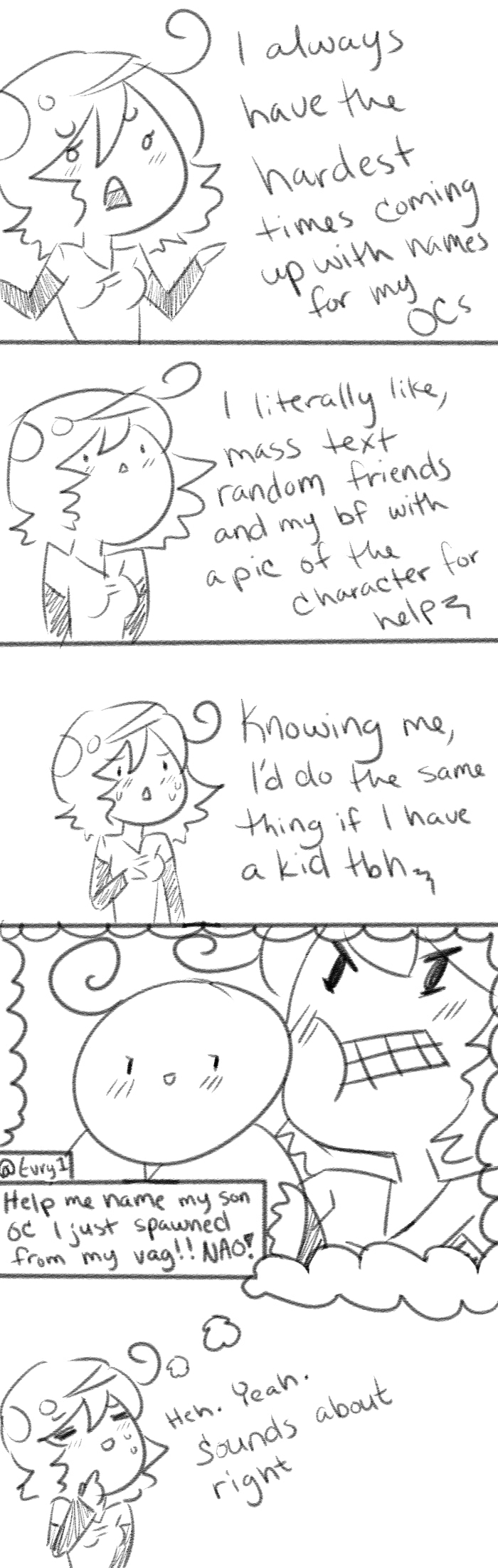 Seriously. I have so many hidden OCs because I can't figure out names for their bitch asses.