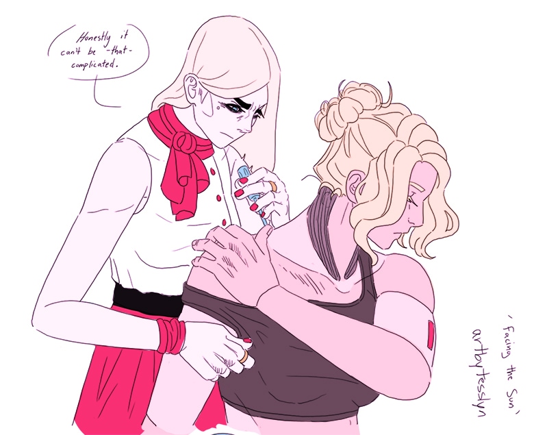 I'm so excited to see more content! I'm so happy that you make these strong female couples that aren't cliche. Being gay isn't their main character trait because that would be superficial! You make them so much more than that and give them depth that they deserve! Keep it up!
