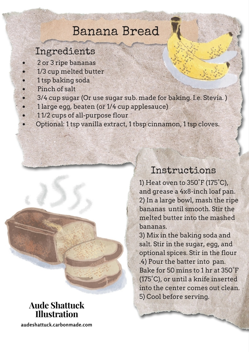 Here's a banana bread recipe! More indepth comic next week. This week I was on vacation. ^>^!