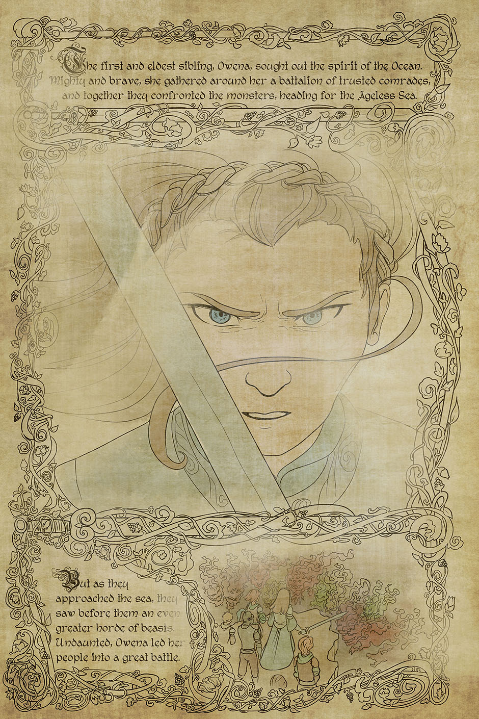 Now we begin the process of introducing each harbinger, beginning with the champion swordswoman and eldest sibling, Owena. Fun fact that her siblings tease her by calling her "Owie", often due to the bruises she hands out liberally.