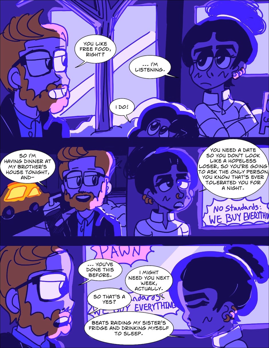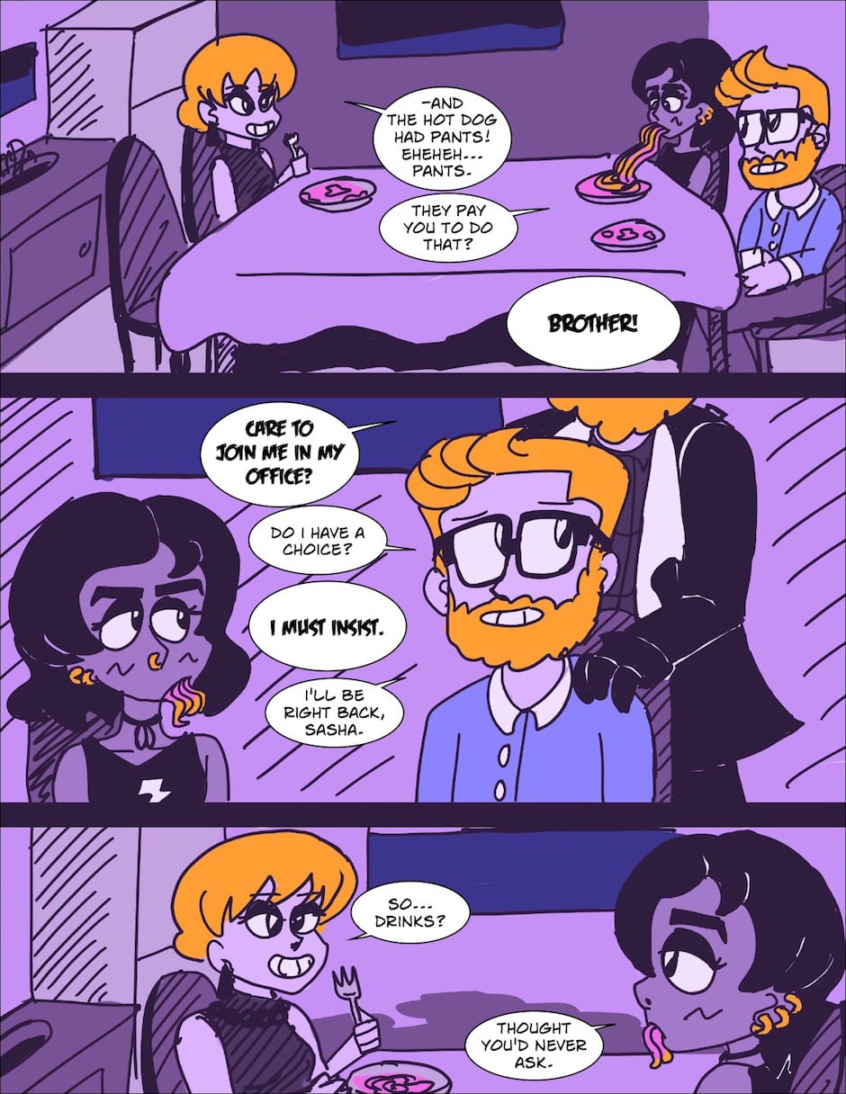 New format: This chapter will be updated just like the comic itself, with new pages appearing Monday, Wednesdays, and Fridays. Follow me at twitter.com/dachampster for extra stuff that doesn't make it into the final product!