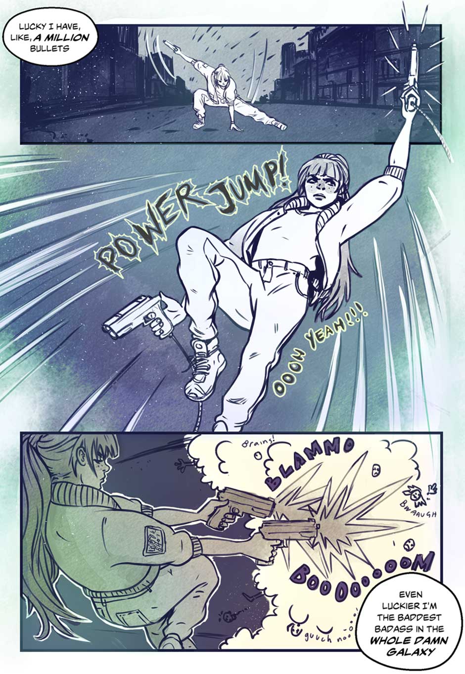 In the distant future, Earth as we know it has crumbled, destroyed and now dominated by mysterious monsters called 'angels'. Safe and sound inside a shielded bubble city, one scruffy queer girl with delusions of heroism stumbles her way through life as a loner. Now that she's found a brand new best friend, life can only get better... right?