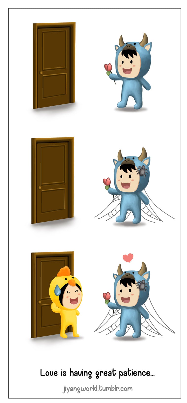 #romance #couple #relationship #love #jiyangworld #cutecomic #comicstrip #draws #graphic #wait #patience #spider #web #rose #flower #relationshipgoals #long #waiting #hours #cute #chibi