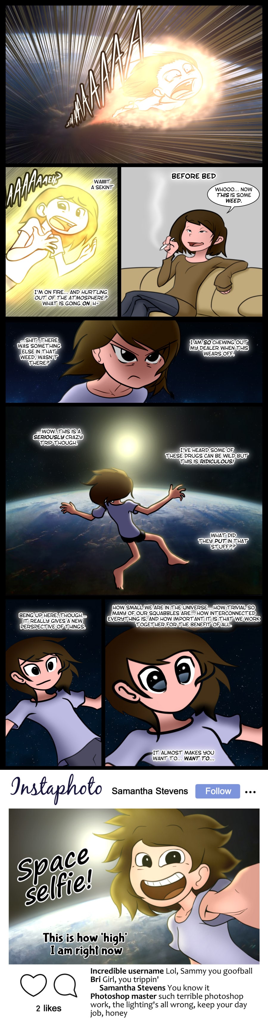 No superheroes. No supervillains. Just one aimless 28 year old who gets crazy superpowers from smoking magical weed... and has no idea what to do with them.