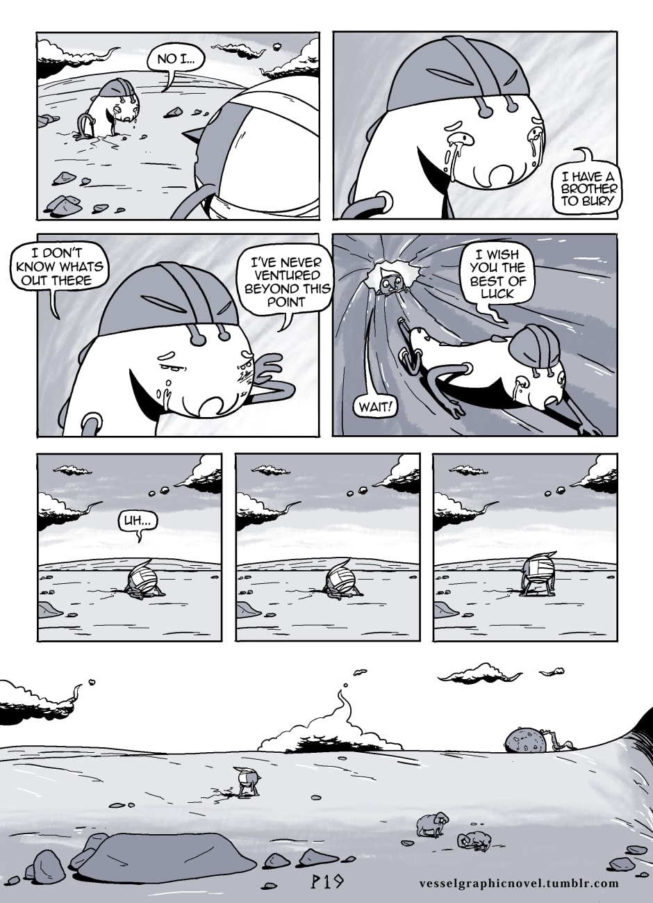The comic Vessel is a collaboration between Tom Schrooten and Thijs Koole. We each take make a comic page and then the other has to make the next page and so on. This way we can surprise each other and add to the story in unexpecting ways! Enjoy Vessel! I hope it will be good c: (we took this idea from the comic creators of Flom! http://flomcomic.tumblr.com/)