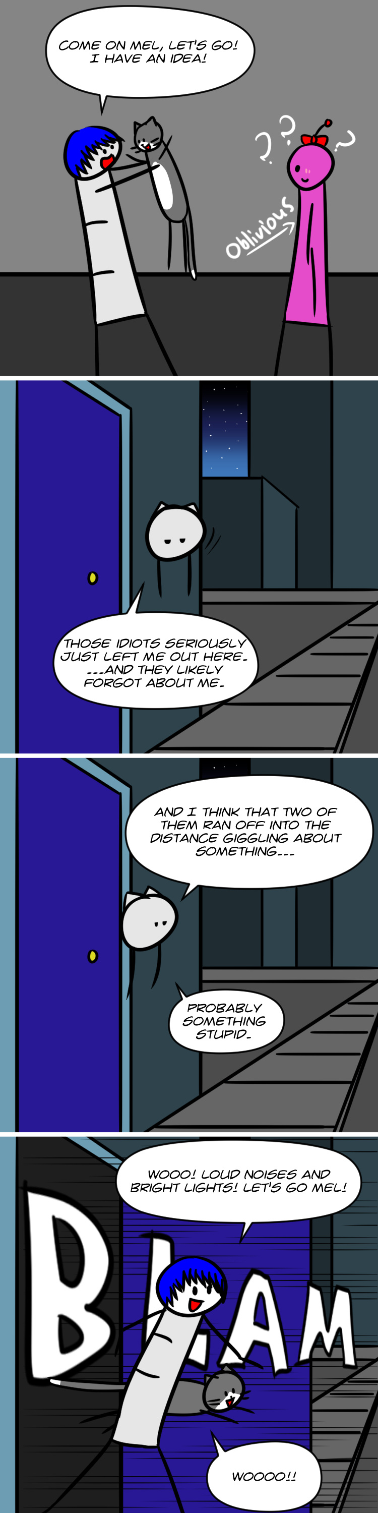 An oblivious spaceman, a curious cat, a stuck-up robot, an insecure alien, and another alien meet in the middle of nowhere. Yup, sounds like the makings of the most sophisticated piece of literature and art you will ever see in your entire life.